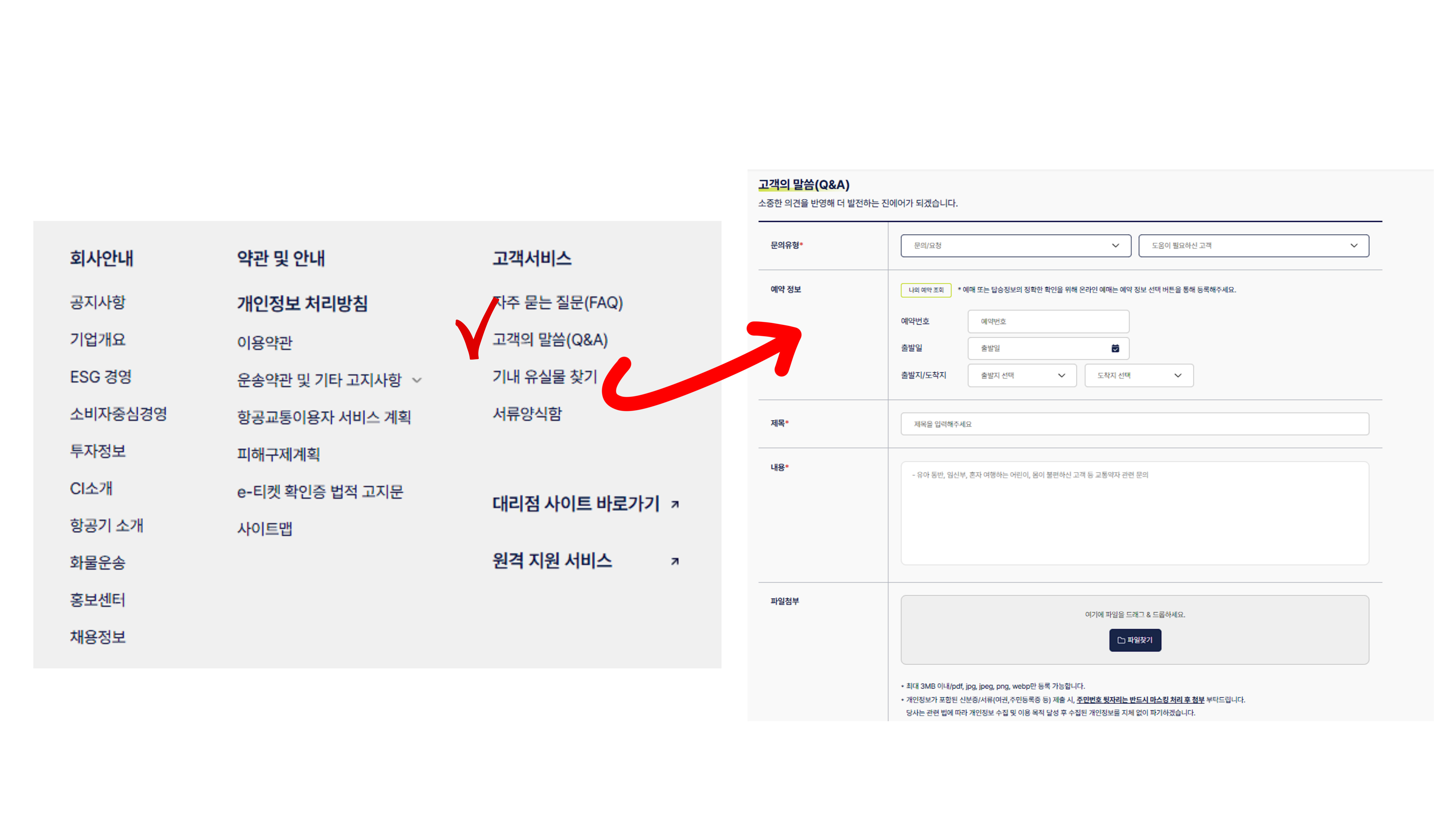 → “고객문의 > 고객의 말씀(Q&A)” 선택