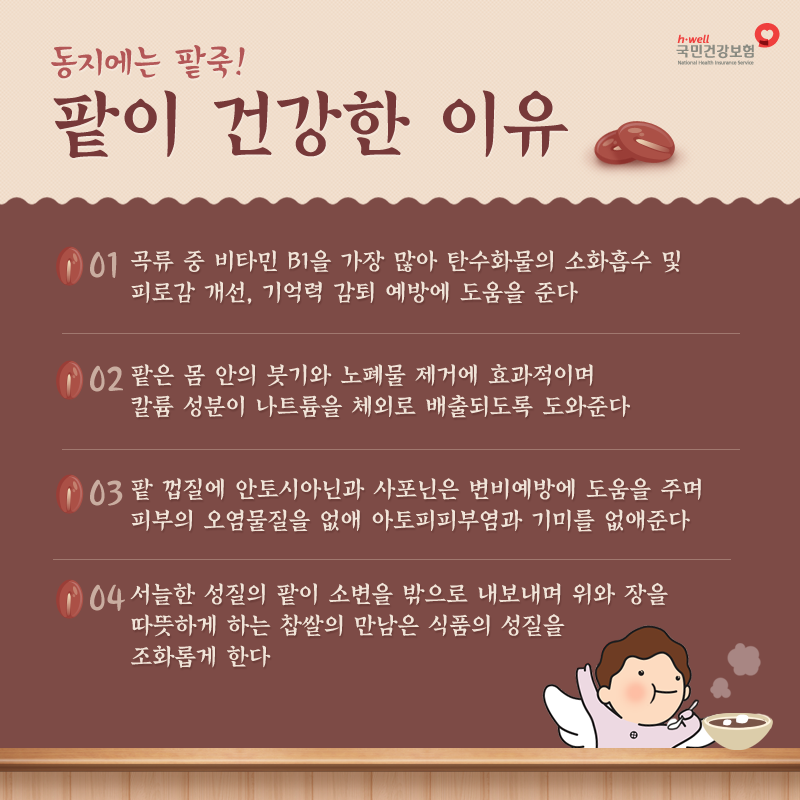 - 팥죽을 먹을 때 같은 끼니의 밥(쌀) 양을 줄여 총 탄수화물량을 맞추기