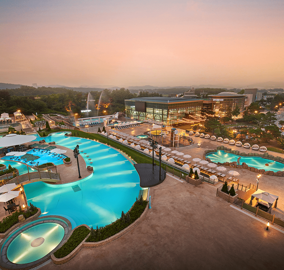 (구 스파캐슬)로 알려진 대규모 리조트. 천연 온천수 기반의 실내외 워터파크와 객실, 식음, 피트니스까지 한 곳에서 해결하는 장점. 수도권에서 차로 약 1.5시간대 접근성.