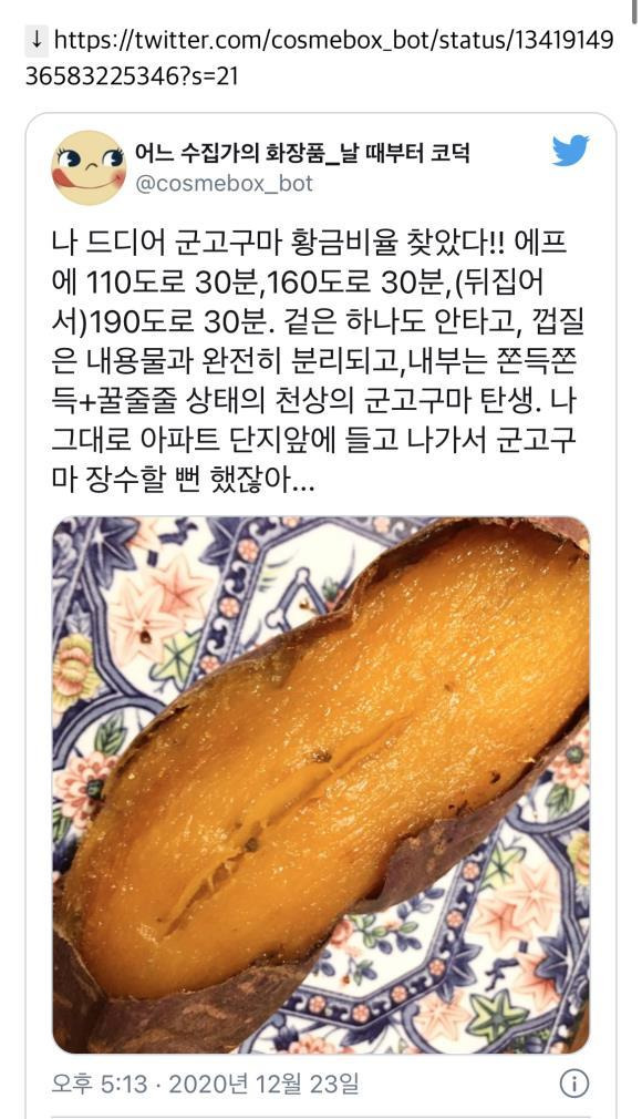 [참고] 트위터에서 유명한 군고구마 레시피 모음