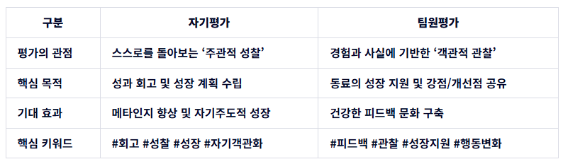자기평가는 나를 위한 성찰의 도구, 팀원평가는 동료에게 주는 성장 선물입니다.