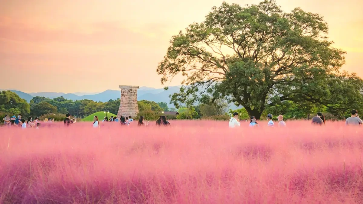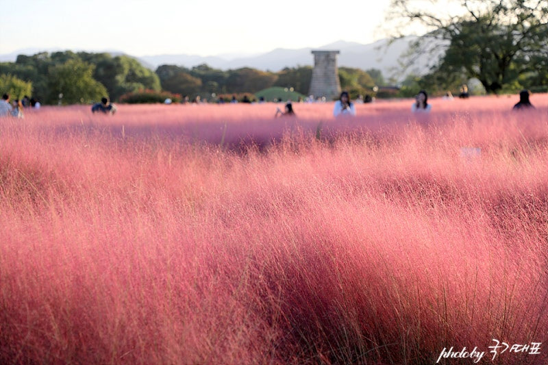 경주는 고즈넉한 유적지와 어우러진 핑크빛 들판으로 매년 SNS를 뒤흔드는 명소예요.