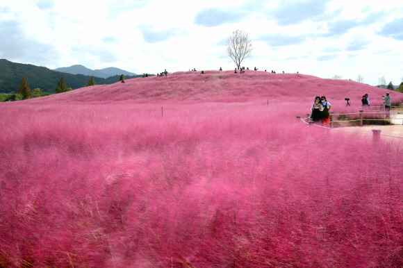 10월의 대표적인 인생샷 여행지로 꼽히는 핑크뮬리는 ‘분홍색 안개밭’처럼 펼쳐져