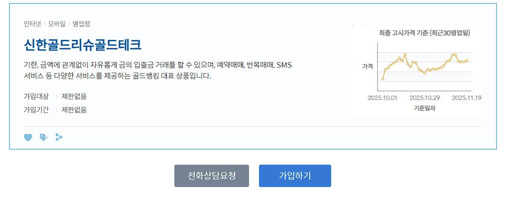 - 신한은행: 신한 쏠(SOL) 앱 → 골드/실물/금 적립 상품 메뉴