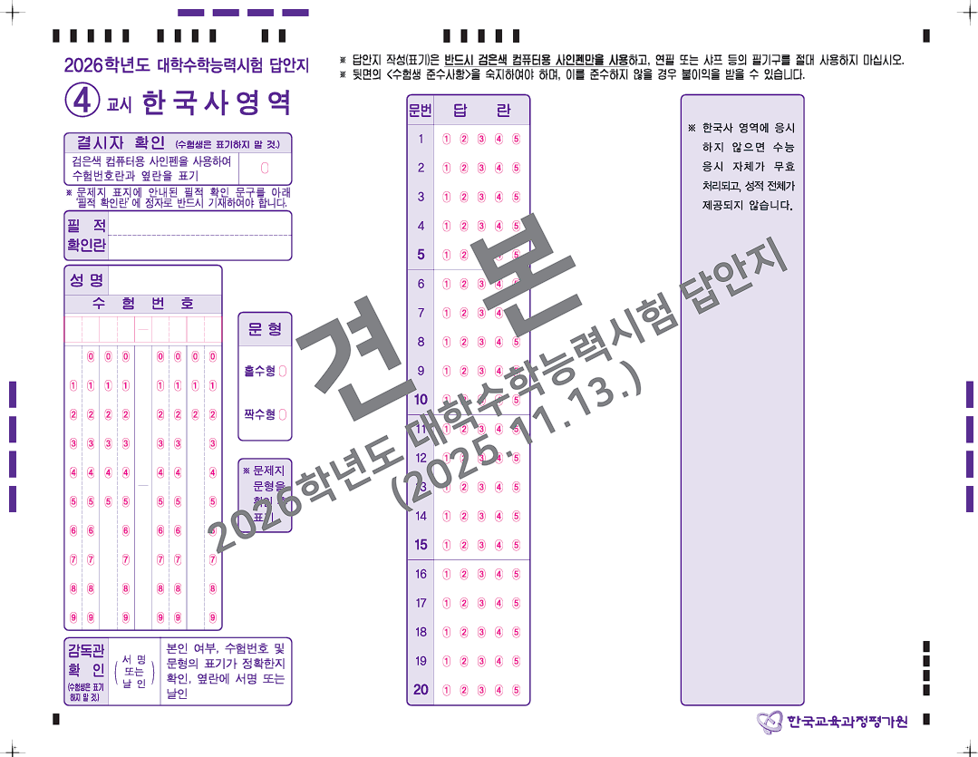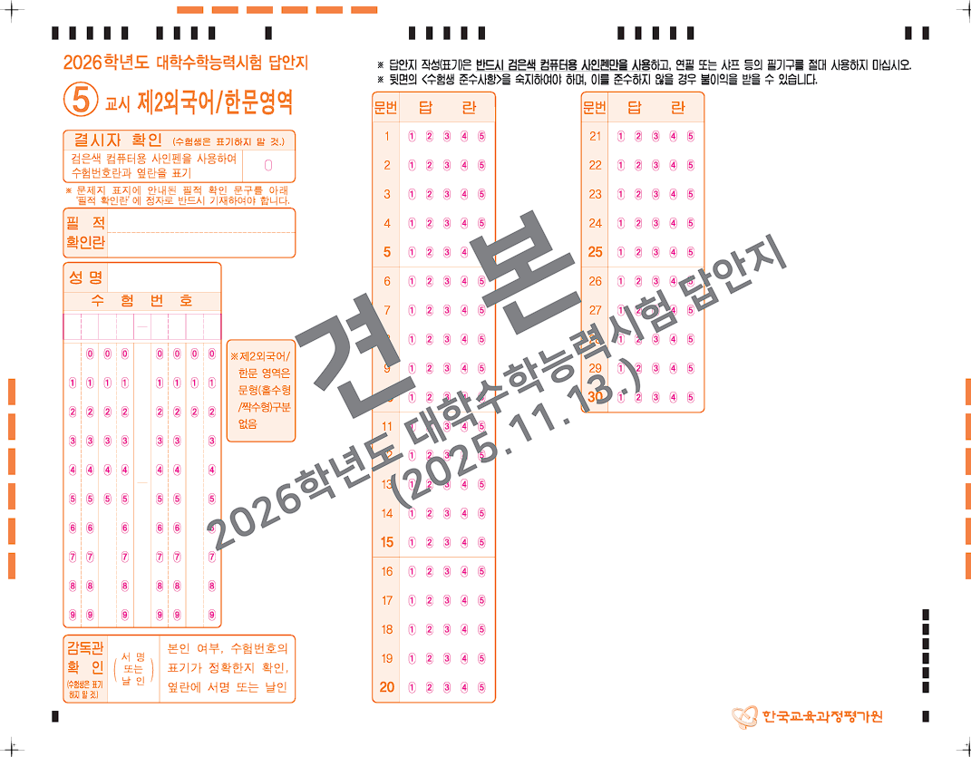| 다운로드 파일 | 2026학년도 수능 OMR 답안지 견본 PDF |