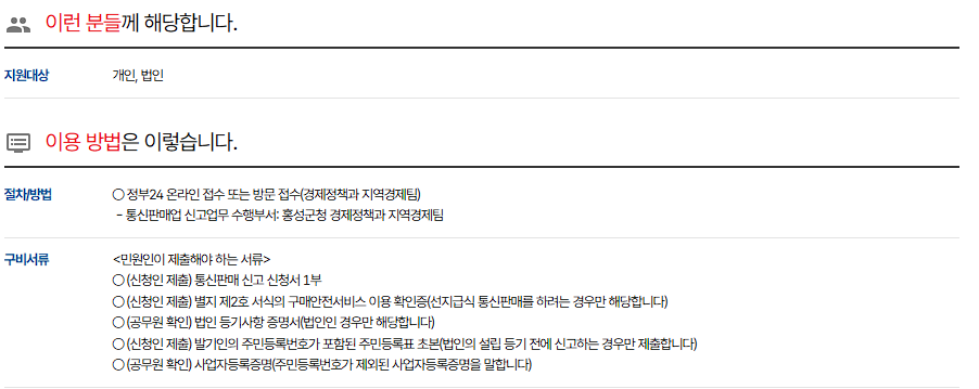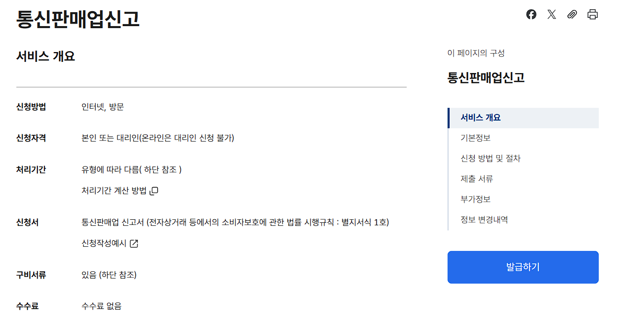 - 정부24 → 통신판매업신고 검색 후 온라인 신청