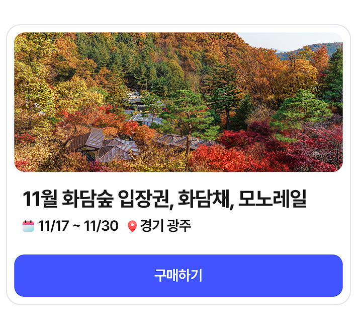 - 검색창에 ‘화담숲’ 검색 → 입장권 상품 선택
