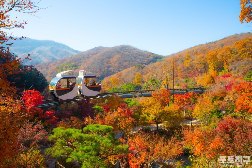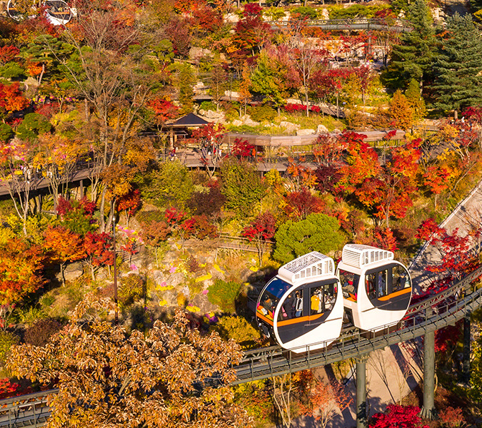 화담숲의 시그니처는 뭐니 뭐니 해도 모노레일이죠. 경사 구간을 편하게 올라가면서 단풍을 위에서 내려다보는 맛이 있습니다.