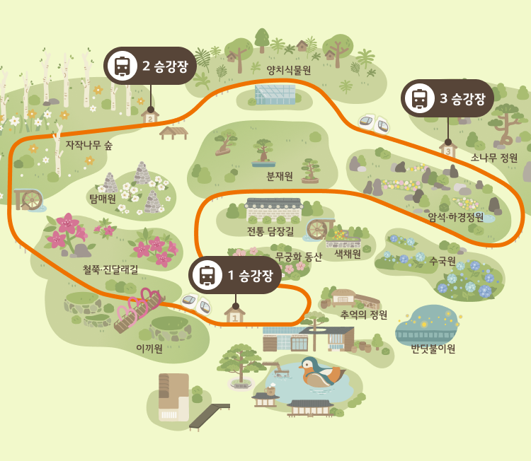 - 3승강장 주변 단풍나무원·메타세쿼이아 길부터 천천히 하산