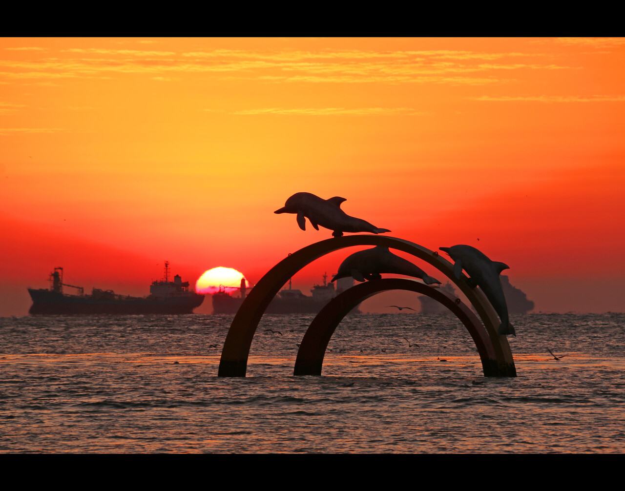 넓은 수평선 위로 떠오르는 태양이 정말 장엄해요.