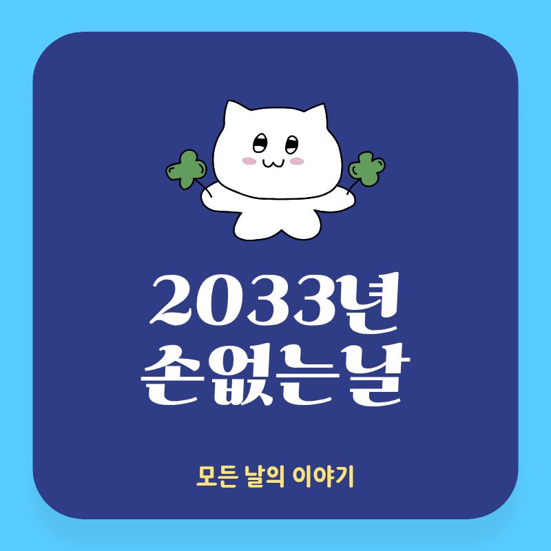 오늘은 2033년에 이사, 전·월세 계약, 매매 계약, 공사, 인테리어, 차량 구매 등 중요한 일정을 계획하는 분들에게 도움이 되는 2033년 손없는날 정보를 전달드립니다.