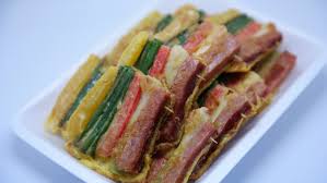 여러 가지 재료를 알록달록 섞어 꼬치에 꿰고 부쳐내는 지금의 산적꼬치 모습과도 잘 어울리는 이름입니다.