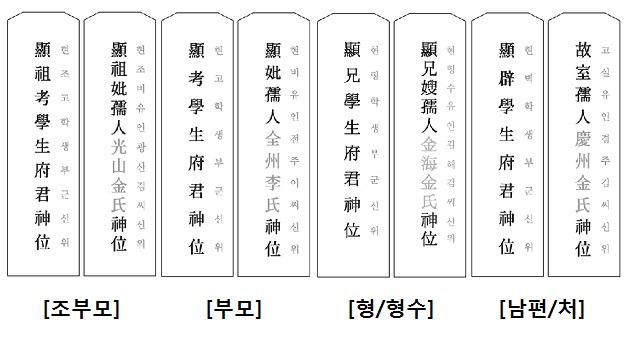 - 할아버지 : 顯祖考學生府君神位 (현조고학생부군신위)