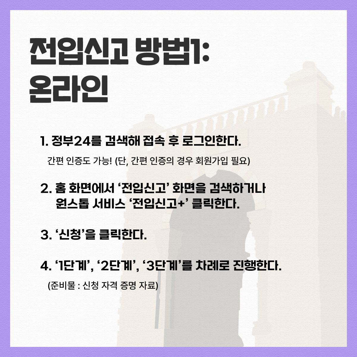 2. 정부24로 인터넷 전입신고 하는 방법 (수수료 무료)