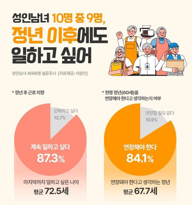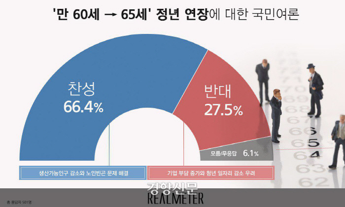 “정년 65세 연장” 자체에 대해서는 젊은 층에서도 70% 이상 공감한다는 조사도 나옵니다.