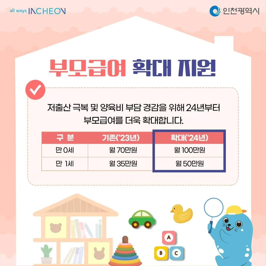 - 2024년: 부모급여 제도가 본격 도입되면서