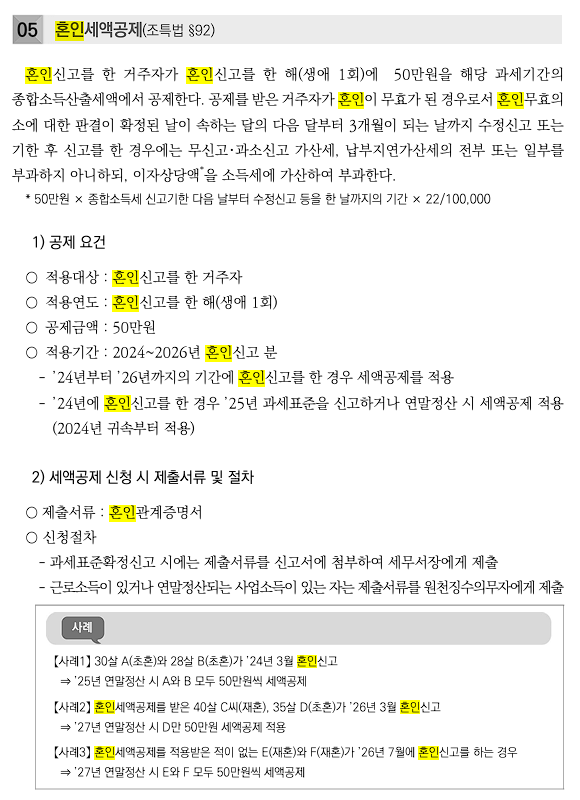 - 2026년 3월 혼인신고 → 2026년 귀속 연말정산에 적용