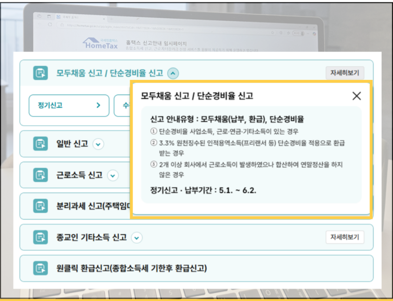 - 국세청 홈택스에서 5월 종소세 기간에 직접 신고합니다.